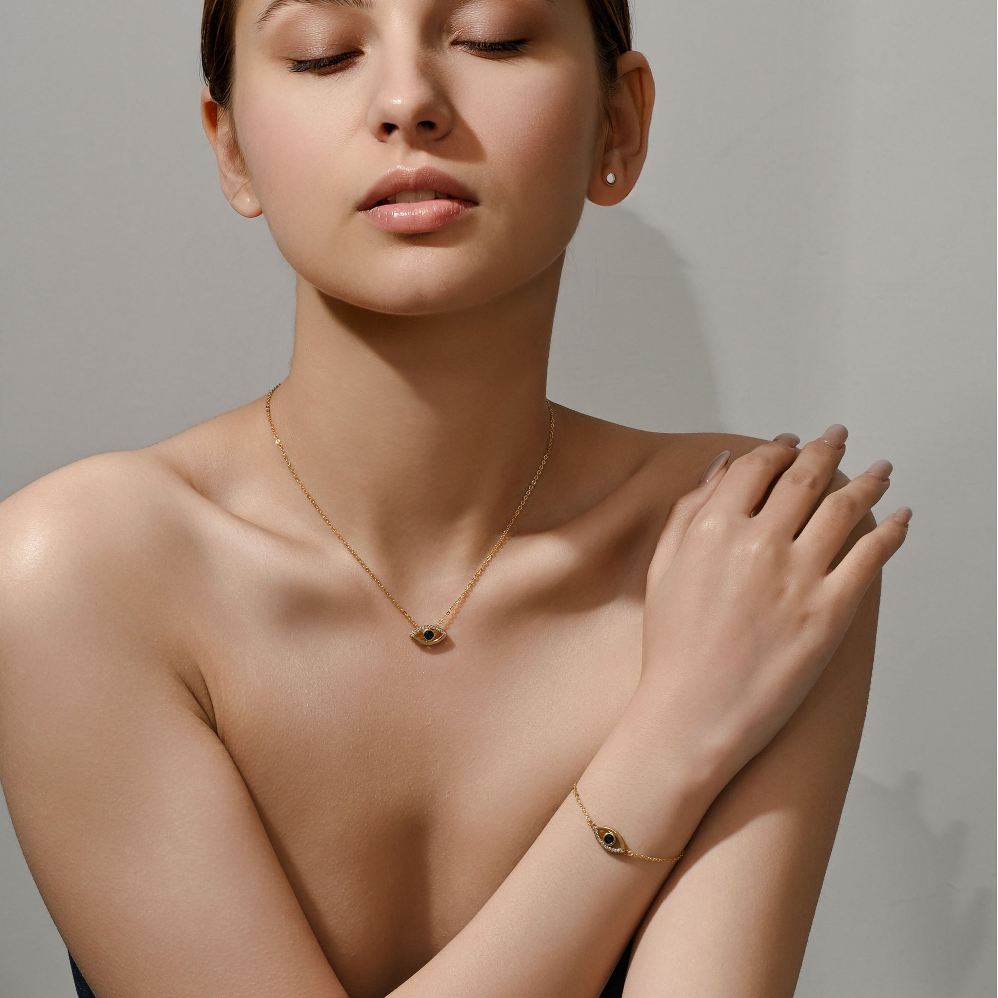 SEADAY Dainty Women's Necklace & Bracelet Set, Pendant Necklace and Charm Bracelet, Trendy Jewelry Birthday Gifts, Plated Gold Necklace and Bracelet Jewelry Sets, Tarnish-resistant, Adjustable Length